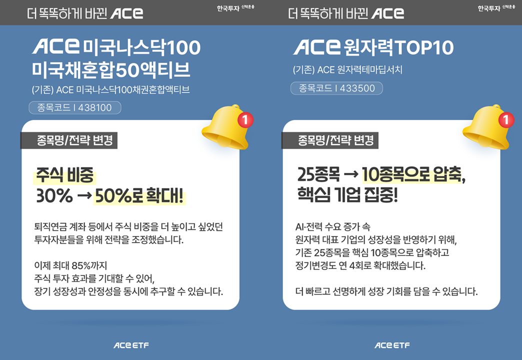 [이번 주 ACE PICK] ACE 미국나스닥100미국채혼합50액티브 (종목코드 438100) & ACE 원자력TOP10 (종목코드 433500)]