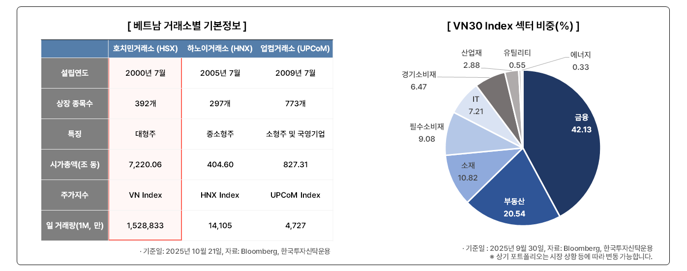 [베트남을 대표하는 대형주 30종목으로 구성한 ACE 베트남VN30 ETF] ACE 베트남VN30 ETF는 베트남 호치민거래소 상장종목 중 시가총액, 유동성, 거래대금의 요건을 충족하는 대형주 30종목에 유동비율 가중 시가총액 방식으로 투자하며, 금융, 부동산, 소비재, IT 등 핵심 업종을 고르게 편입하고 있는 상품입니다. 베트남에 투자하고 싶은데 현지 계좌 개설이나 환전 문제 등이 번거로우시다면, 손쉽게 투자하기 좋은 대안입니다. |