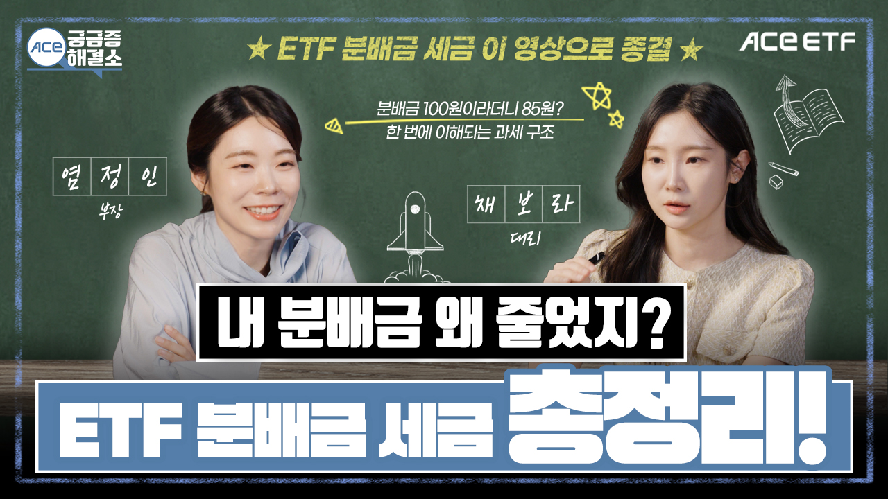투자자 분들의 궁금증에 ACE ETF가 직접 답해드리는 콘텐츠! ACE 궁금증해결소 “[Ep.03] ETF 분배금이 줄어든 이유?” 콘텐츠가 업로드 되었습니다. ETF 세금 구조, 이해하기 어렵다면?! 아래 영상을 통해 확인해보세요! |