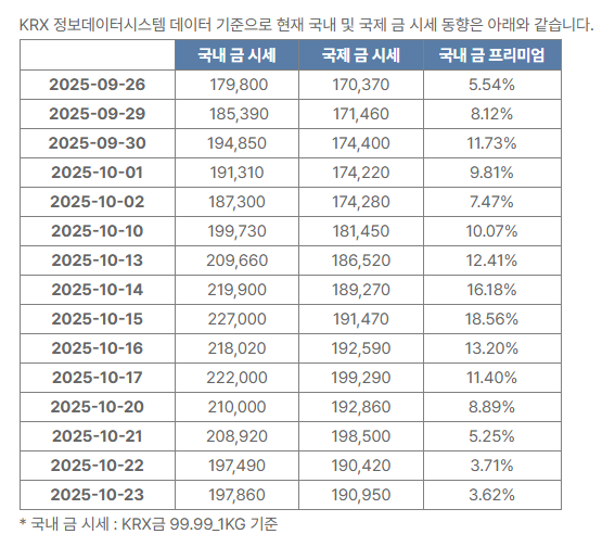 * 국내 금 시세 : 국제 금 시세 + 달러화(USD) 환율 + 국내 수급 등 기타 요인