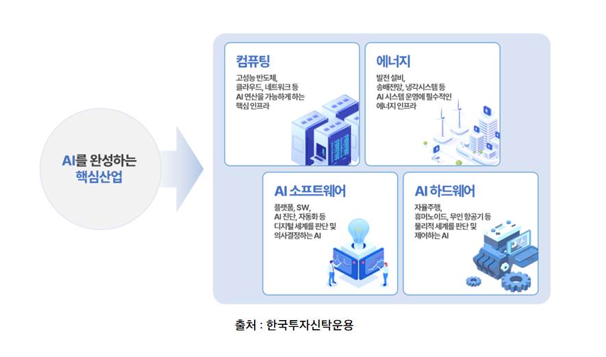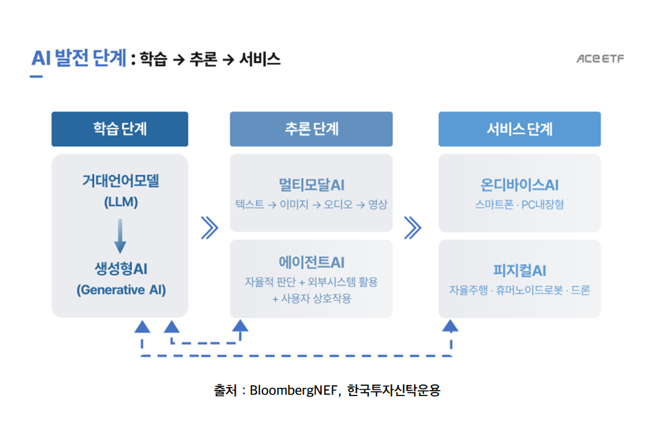📣 그런데 AI는 ‘AI발전 단계에 따라 주도 산업이 바뀌는 구조’이기 때문에 이 흐름 전체를 따라가는 투자가 필요합니다.