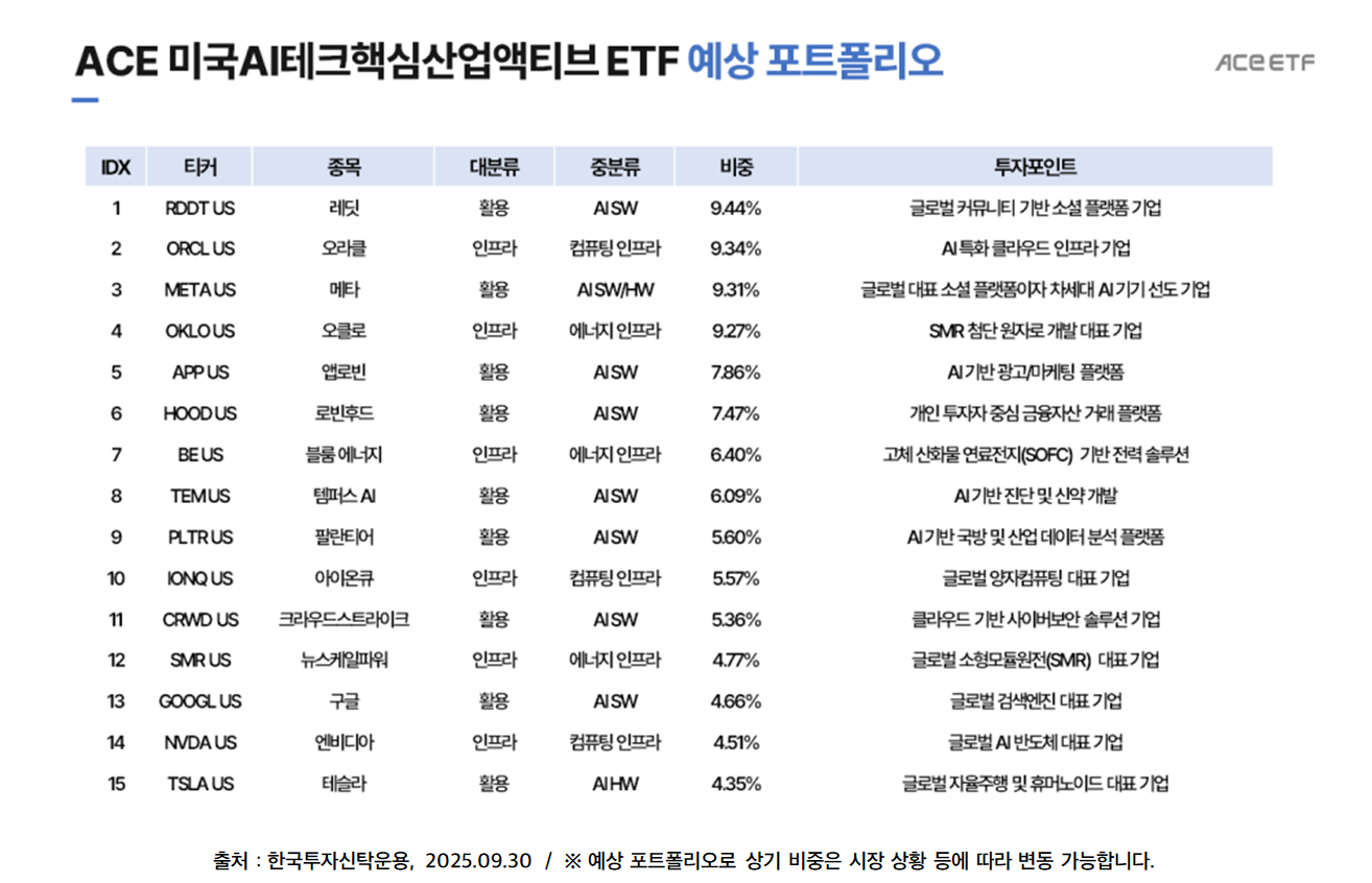 [이번 주 ACE PICK] ACE 미국AI테크핵심산업액티브 (종목코드 0118Z0) |