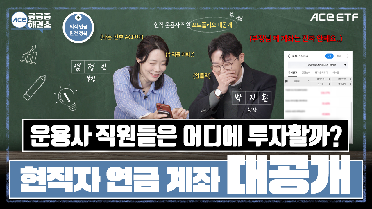 투자자 분들의 궁금증에 ACE ETF가 직접 답해드리는 콘텐츠! ACE 궁금증해결소 “[번외편] 자산운용사 직원들의 연금 투자 이야기” 콘텐츠가 업로드 되었습니다. 자산운용사 직원들은 실제로 어떤 ETF에 투자하고 있는지 궁금하시다면?! 👀 아래 영상을 통해 연금 계좌 내 ETF 실전 활용법에 대해 알아보세요! |