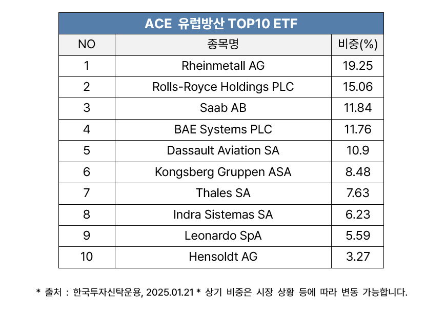 [이번 주 ACE PICK] ACE 유럽방산TOP10 ETF (종목코드 0102X0)