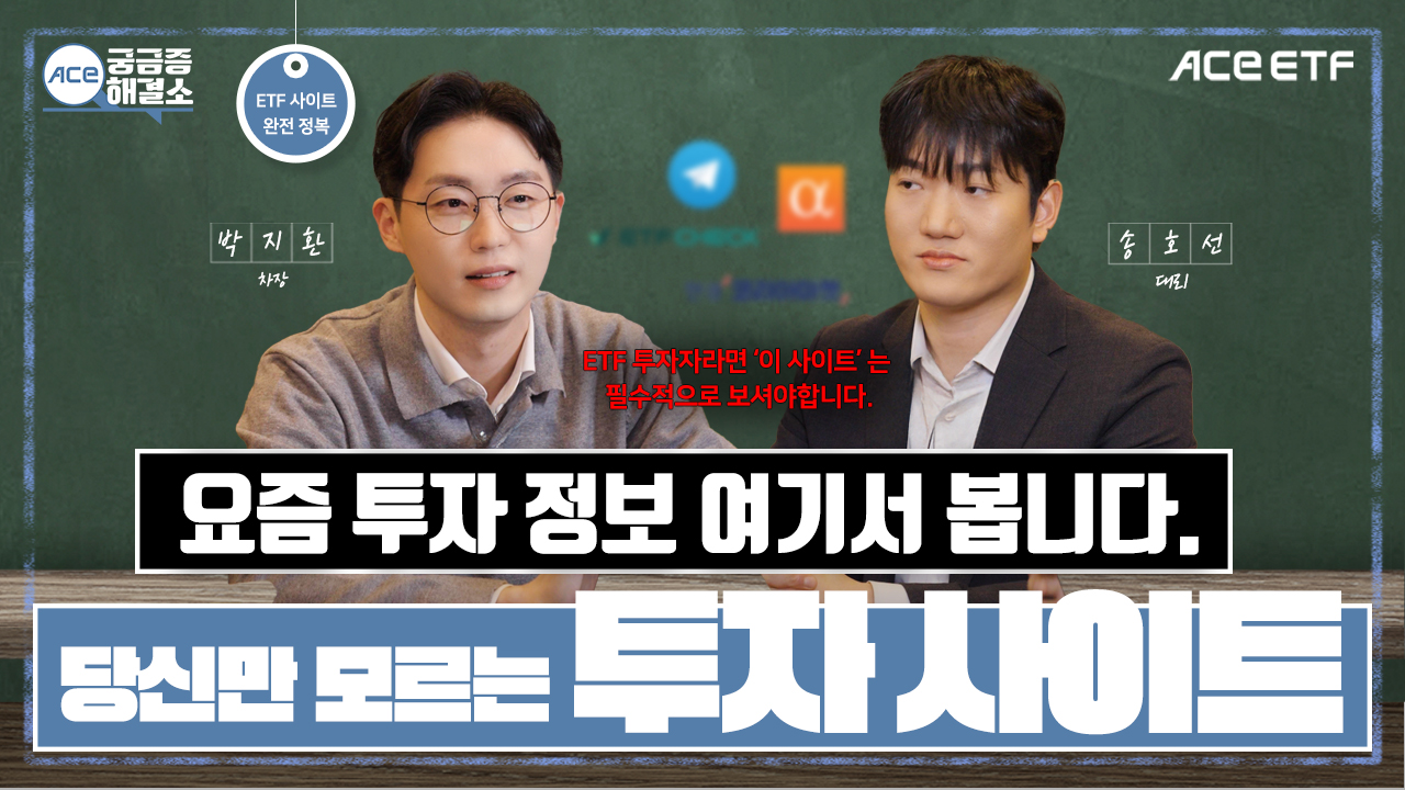 투자자 분들의 궁금증에 ACE ETF가 직접 답해드리는 콘텐츠! ACE 궁금증해결소 “[EP.12] ETF 투자 정보, ACE는 여기서 봅니다” 콘텐츠가 업로드 되었습니다. 요즘 투자 시작하신 분들, “투자 정보는 어디서 봐야 할지” 고민 많으셨나요? 증권사 리포트부터 재무 정보, ETF 성과 분석까지! 자산운용사 직원들이 실제 활용하는 투자 정보 사이트를 정리해드립니다. 👀 아래 영상을 통해 자세히 알아보고 ACE ETF와 함께 투자 정보 루틴을 계획해보세요! |