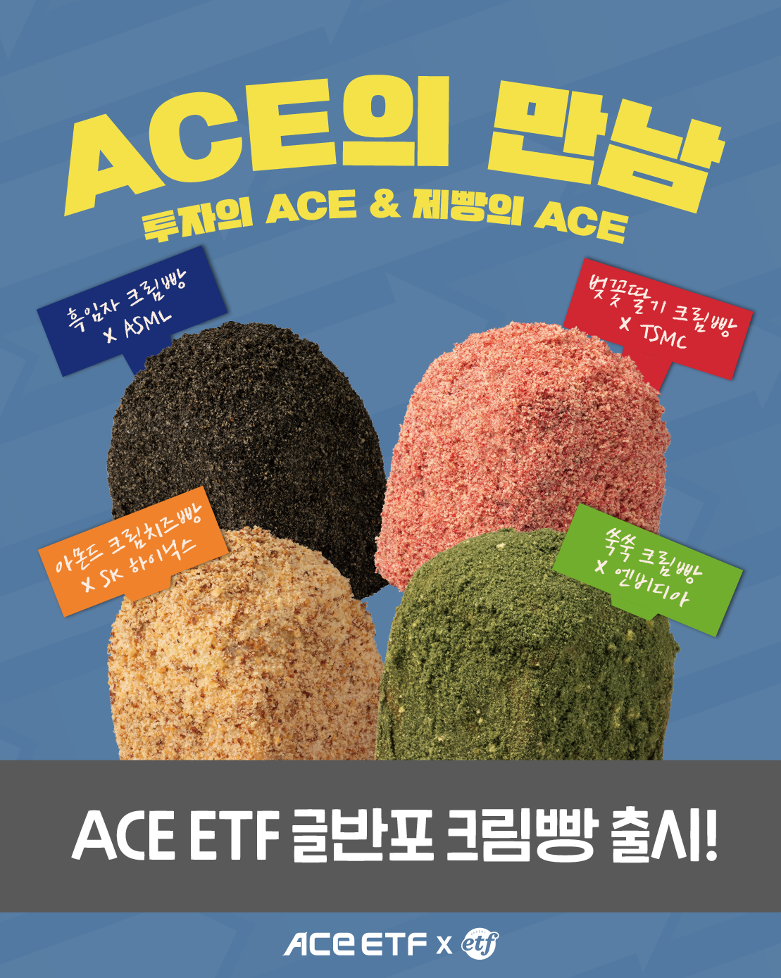 AI 시대, 반도체는 이제 선택이 아닌 핵심적으로 고려해야 할 산업. 그래서 ACE ETF는 반도체 핵심 기업들을 한 번에 담은 글반포 크림빵 4종 세트를 준비했습니다.