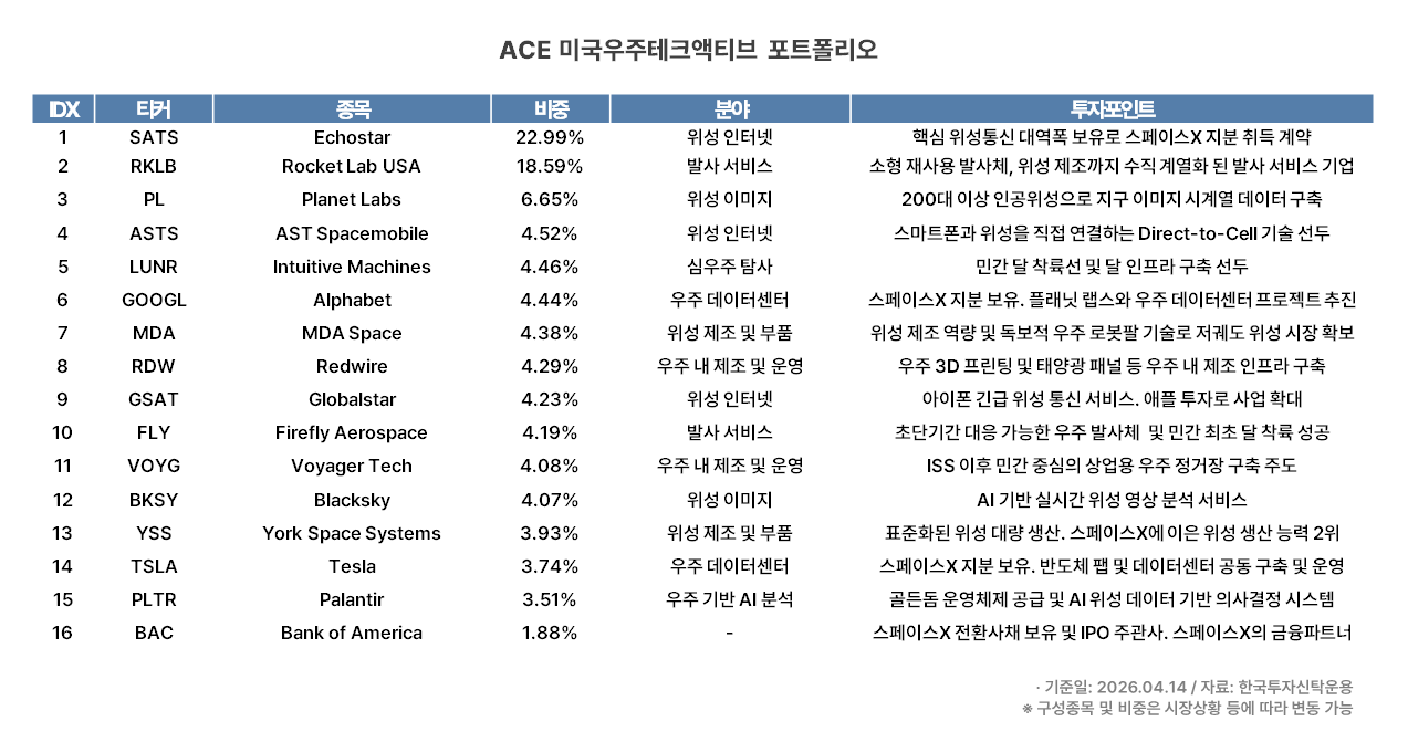 [이번 주 ACE PICK] ACE 미국우주테크액티브 (종목코드 0180V0)