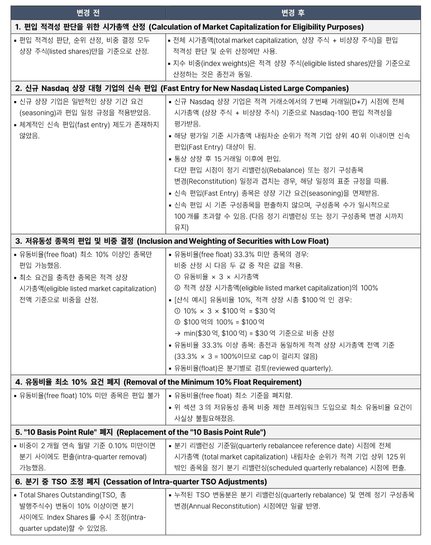 나스닥100 지수 방법론 변경 요약 (변경 시행일: 2026. 5. 1) |